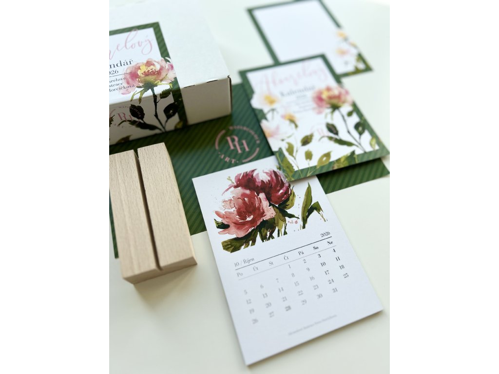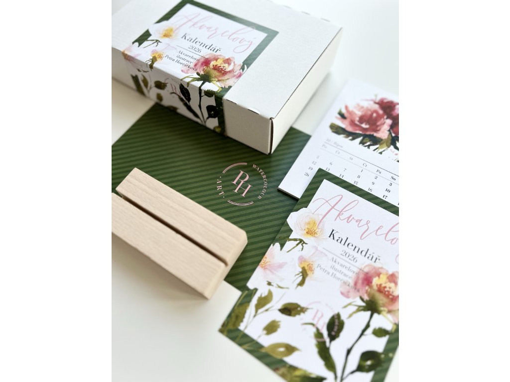 Součástí kalendáře je dřevěný stojánek z bukového dřeva a dárková krabička, díky které je kalendář připravený rovnou k darování.