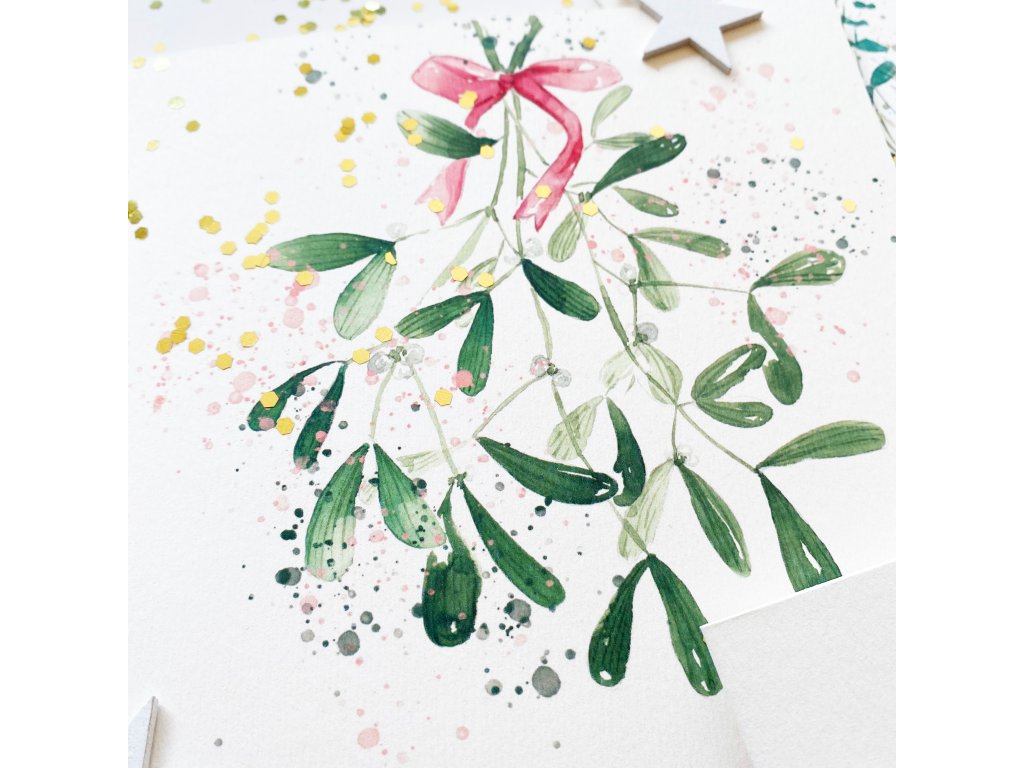 Letošní kolekce akvarelových přání je laděna do zeleno-zlatých barev.